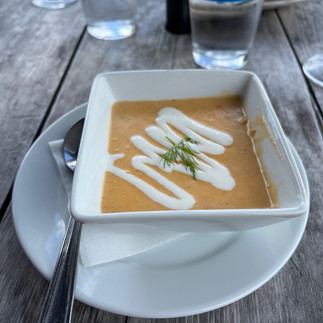 We had been looking for somewhere for lunch and stumbled across a place called the The Leaf, which was a wonderful lunch. The Leaf is a botanical garden type place with a restaurant called. Gather Kraft Kitchen. Monika got to try arctic char for the first time. 😎